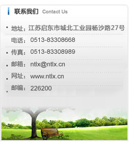電話:0513-83209668 傳真:0513-83308989 網址:www_ntlx_cn.zla600.cn E-mail:ntlx@ntlx.cn